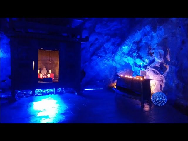入口から内部を覗くと、奥の方が青く光っているのが分かりますね。